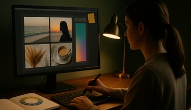 Muchos creadores se enfrentan a la parálisis de elección. Prueban combinaciones, pero dudan del tono, contraste y lectura. Estudio del Color es una guía visual que te acompaña desde la idea hasta la paleta final, con modelos claros y ejemplos imprimibles para aplicar sin miedo.